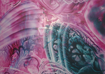 2012Verschilende dimensies, diep paars en fucksia roze. en diep groen. Intense energie,, Zeer sprekend werk.