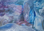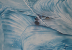 2012Een zwaaiende en spelende dolfijn. Mengeling van blauwe, zilveren en zacht roze kleuren. Golvende bewegingen. Speelsheid