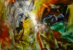 Geel groene energie, zorgt voor een opgewekt humeur, en het geeft een zekere vrijheid. Het is een heel luchtig werk en de kleuren lopen prachtig in elkaar over.