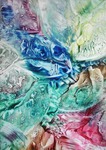 2012Kris, kras, gemengde gevoelens door elkaar heen. Hele blije, vrolijke , felle kleuren, tevens ook wat meer zwaardere kleuren, duidt op gemengde gevoelens. Toen ik dit werk maakte was mijn stemming zo ook, dus dat heb ik mooi uit kunnen beelden.